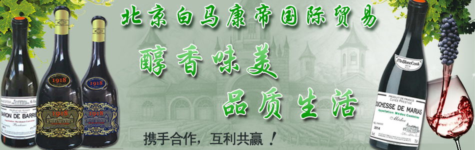 北京白馬康帝國(guó)際貿(mào)易有限公司坐落于北京房山區(qū),主營(yíng)法國(guó)進(jìn)口葡萄酒,目前公司已與“白馬康帝“和”諾波特”兩大酒莊簽下中國(guó)總代理協(xié)議。公司致力打造成中國(guó)最專(zhuān)業(yè)、最受歡迎的法國(guó)葡萄酒進(jìn)口商。